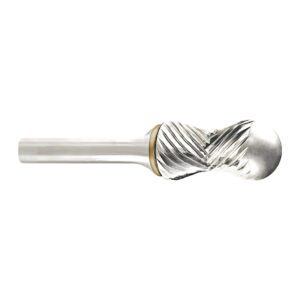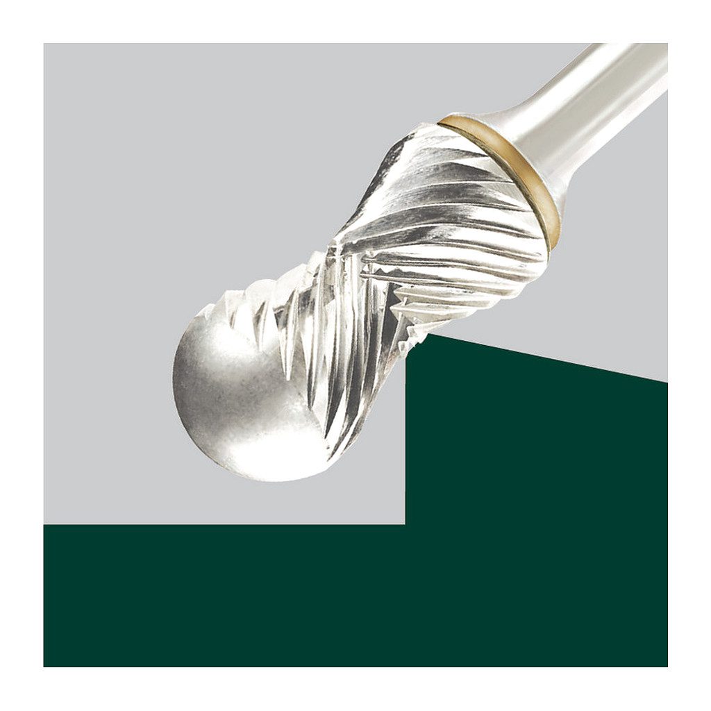 • Jedinečná zaobľovacia fréza so špeciálnou zakrivenou štruktúrou. Špeciálne vyvinutý vodiaci systém zabraňuje zošmyknutiu obrobka. Tak sa ideálne hodí pre jemné polomery na ostrých rohoch/hranách a pre dobrú kontrolu nad ostrými rohmi. Prostredníctvom špeciálnej drážkovej geometrie (prekrývajúce sa štandardné ozubenie v strede frézy) sa dosahuje jemné frézovanie na všetkých plochách a vysoký rezný výkon s dlhou životnosťou. Rovná čelná strana pomáha pri vedení frézy a chráni pred poškodením povrchu. Špeciálne vyvinutá na tvorbu skosených hrán pri tvrdých materiáloch, akými je oceľ, ušľachtilá oceľ, liatina, titán, bronz, meď, mosadz atď.