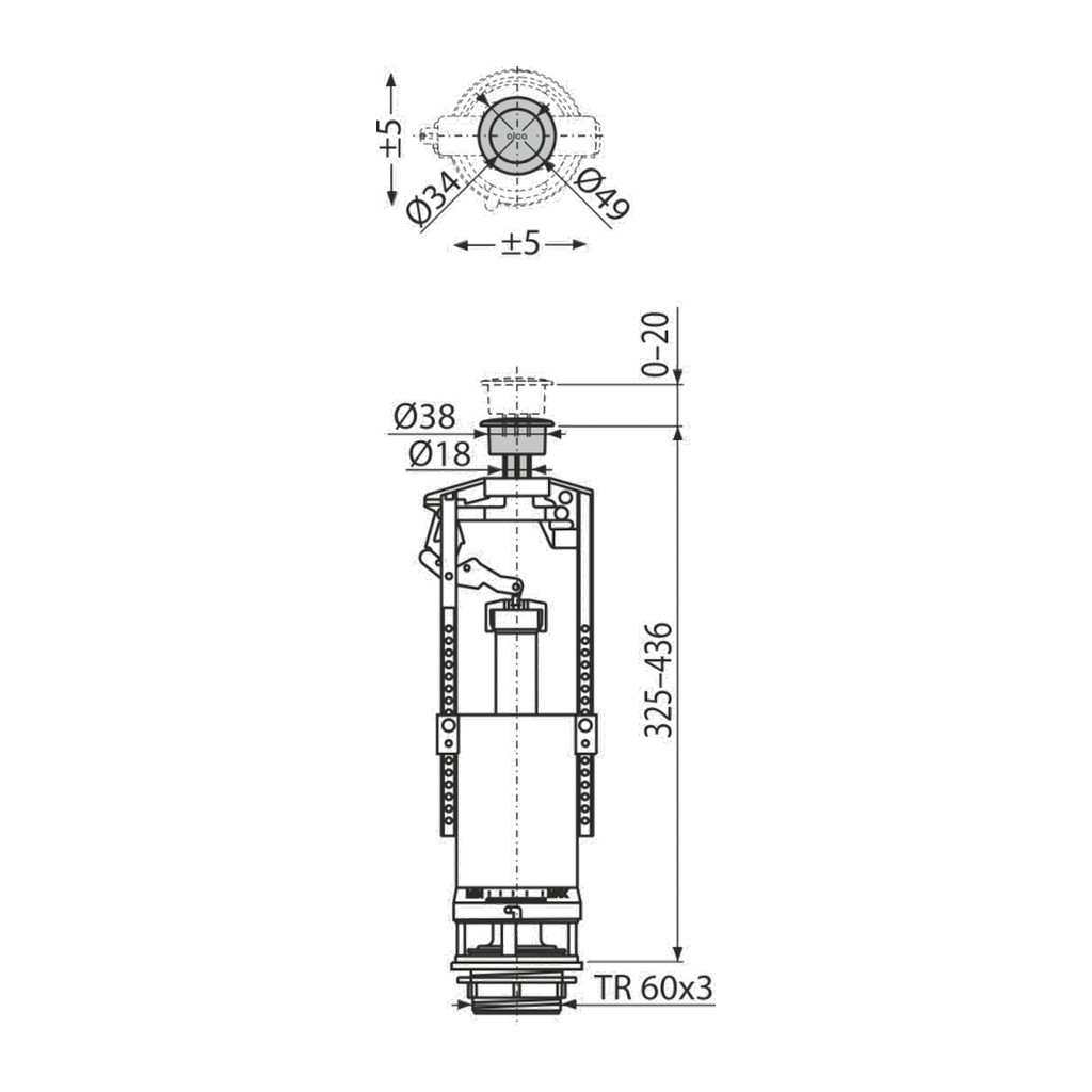 Konštrukcia umožňuje nastavenie optimálnej výšky ventilu podľa výšky nádržky