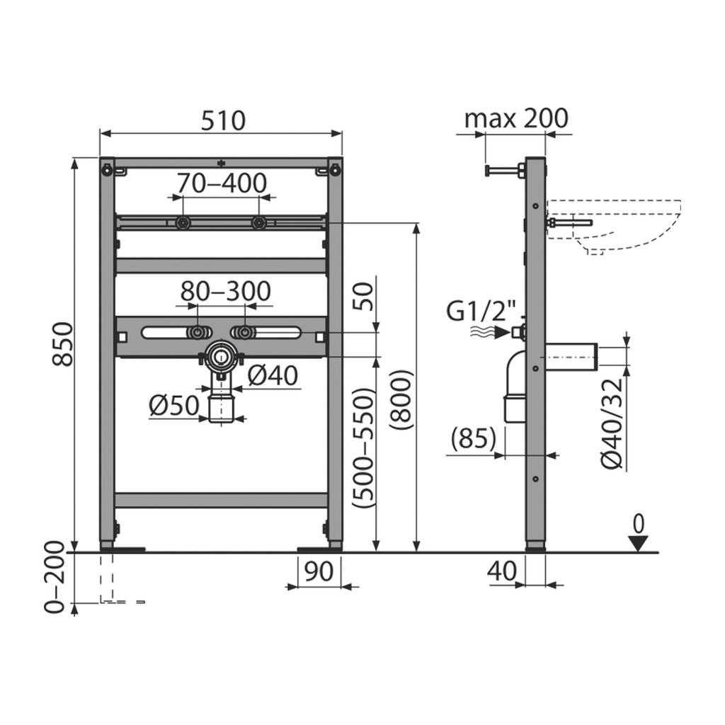 Domov » Sanita » Toalety » Podomietkové inštalačné systémy » Inštalačné systémy pre umyvadlá » AlcaPlast A104/850 – Montážny rám pre umývadlo