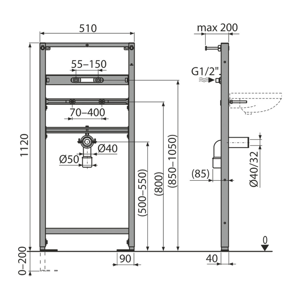 Domov » Sanita » Toalety » Podomietkové inštalačné systémy » Inštalačné systémy pre umyvadlá » AlcaPlast A104A/1120 – Montážny rám pre umývadlo a batériu