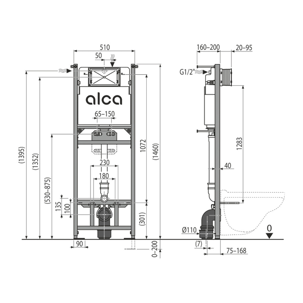 Domov » Sanita » Toalety » Podomietkové inštalačné systémy » Inštalačné systémy pre WC » AlcaPlast A108F/1500 – Montážny rám s nádržkou pre výlevku s odpadom DN90/110 a batériu