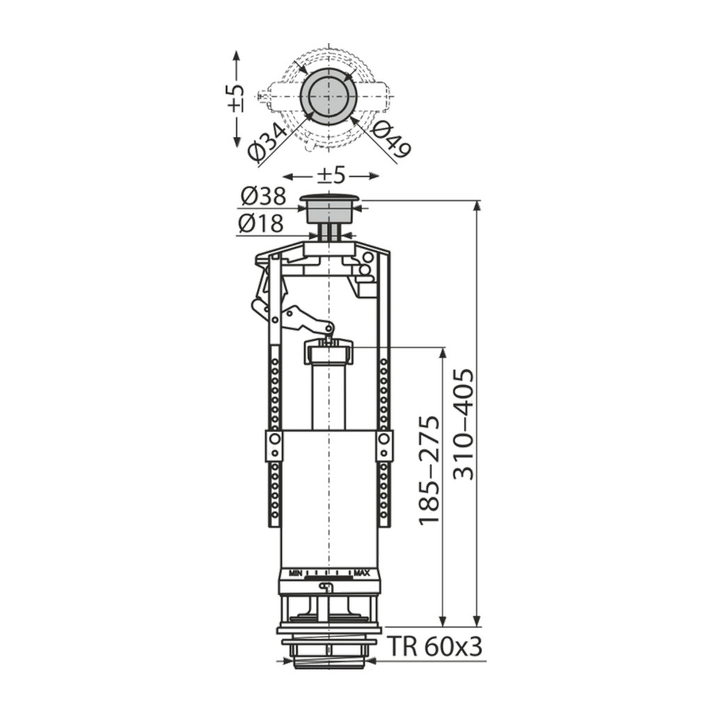 Konštrukcia umožňuje nastavenie optimálnej výšky ventilu podľa výšky nádržky