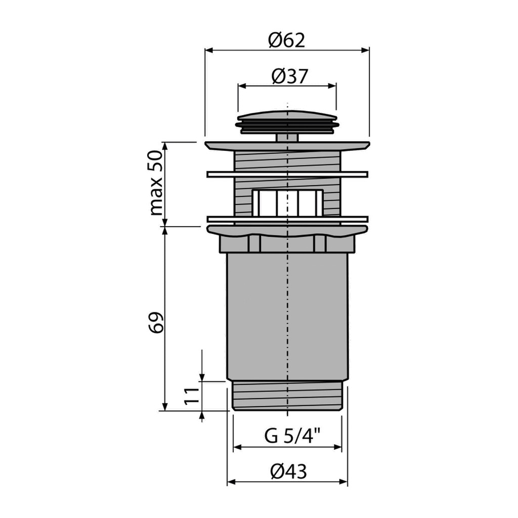 Domov » Sanita » Kúpeľne » Odtokové systémy » AlcaPlast A391 – Výpusť umývadlová CLICK/CLACK 5/4″ celokovová s prepadom, malá zátka