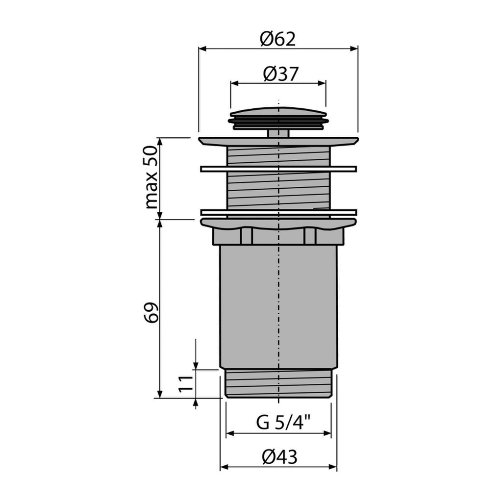 Domov » Sanita » Kúpeľne » Odtokové systémy » AlcaPlast A394 – Výpusť umývadlová CLICK/CLACK 5/4″ celokovová bez prepadu, malá zátka