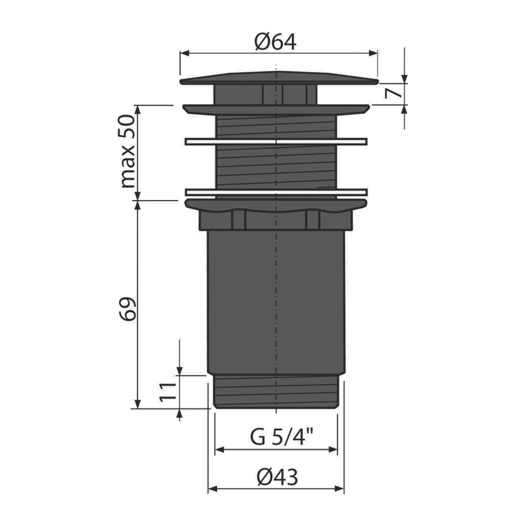 Domov » Sanita » Kúpeľne » Odtokové systémy » AlcaPlast A396BLACK – Výpusť umývadlová 5/4″ celokovová, veľká neuzatvárateľná zátka, pre umývadlá bez prepadu, čierna-mat