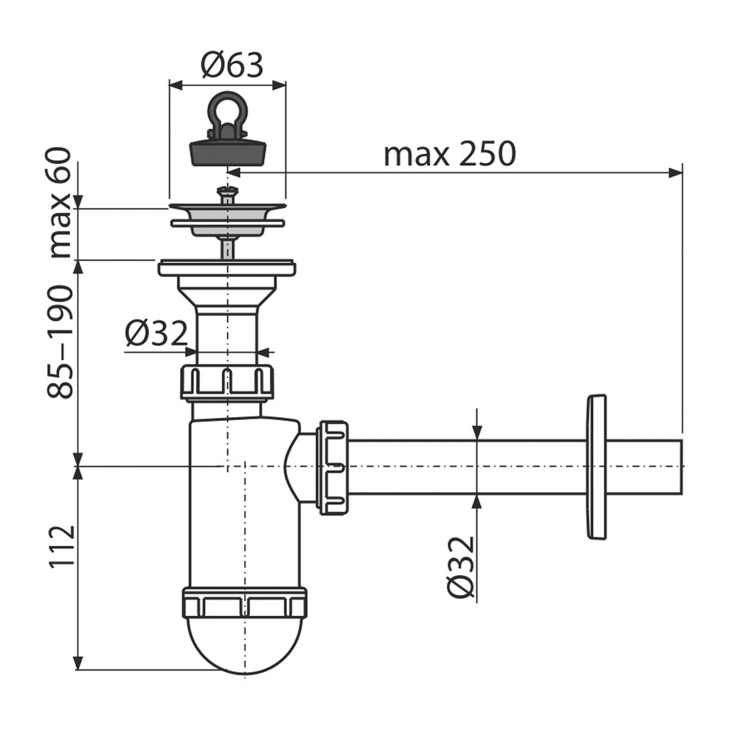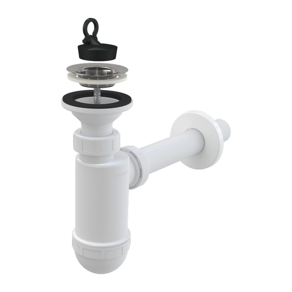 Domov » Sanita » Kúpeľne » Odtokové systémy » AlcaPlast A410 – Sifón umývadlový DN32 s nerezovou mriežkou DN63