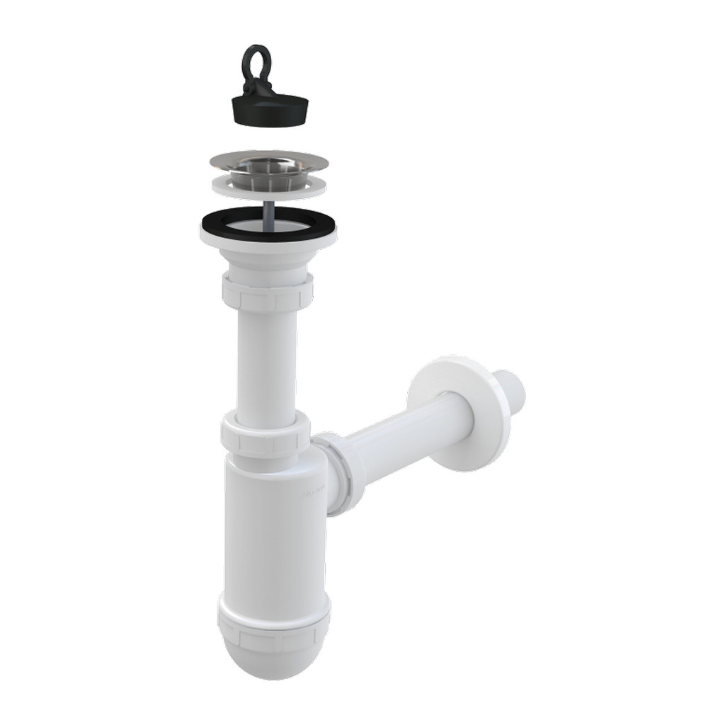 Domov » Sanita » Kúpeľne » Odtokové systémy » AlcaPlast A411 – Sifón umývadlový DN32 s nerezovou mriežkou DN63
