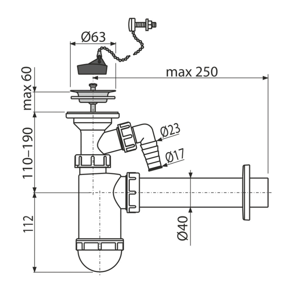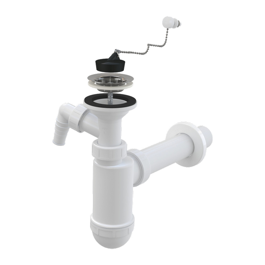 Domov » Sanita » Kúpeľne » Odtokové systémy » AlcaPlast A41PR – Sifón umývadlový DN40 s prípojkou a nerezovou mriežkou DN63, retiazka