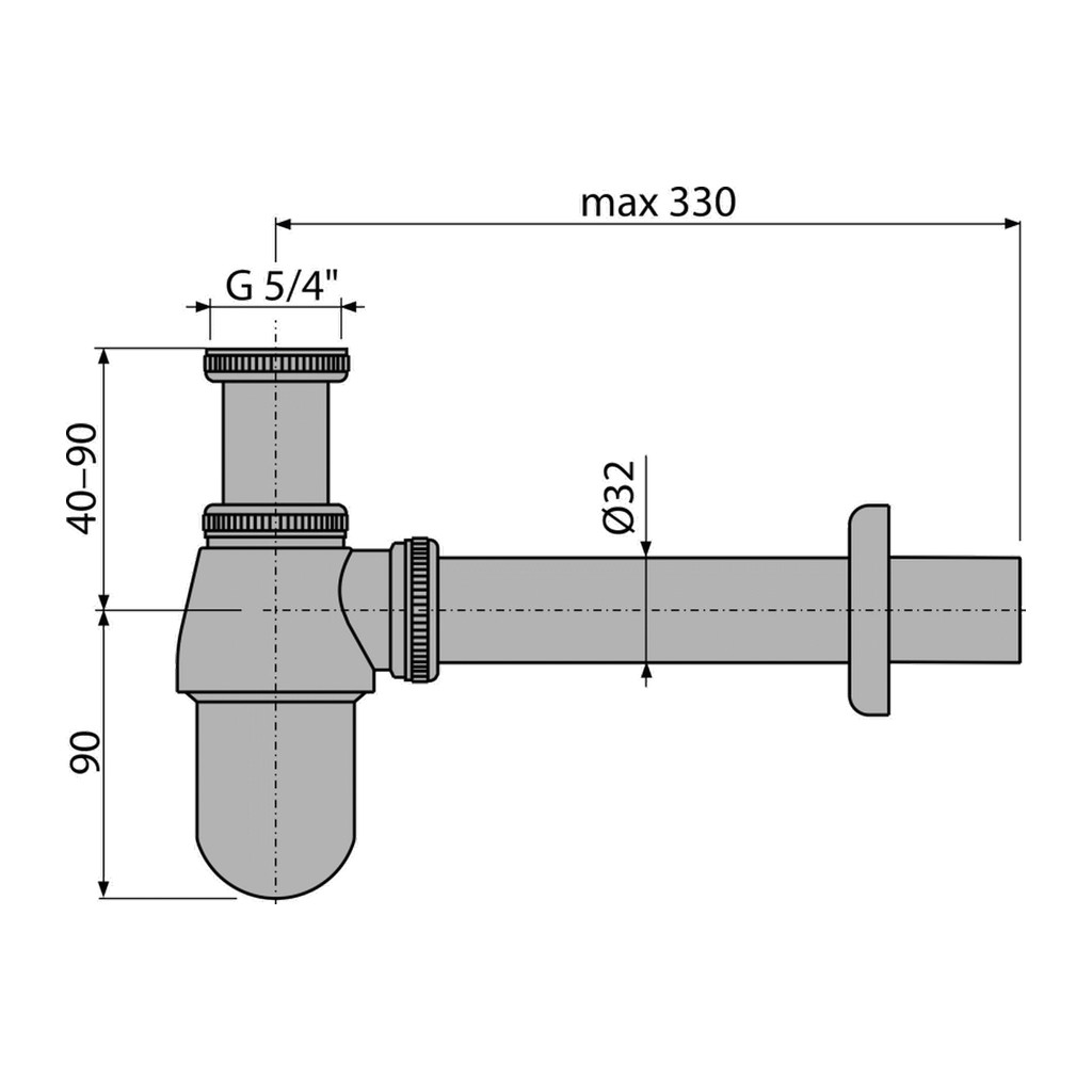 Domov » Sanita » Kúpeľne » Odtokové systémy » AlcaPlast A431 – Sifón umývadlový DN32 s převlečnou maticou 5/4″, kov