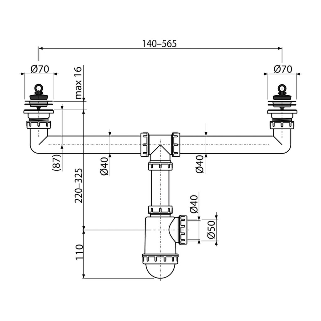 Domov » Sanita » Kúpeľne » Odtokové systémy » AlcaPlast A449-DN50/40 – Sifón pre dvojdrez s nerezovými mriežkami DN70