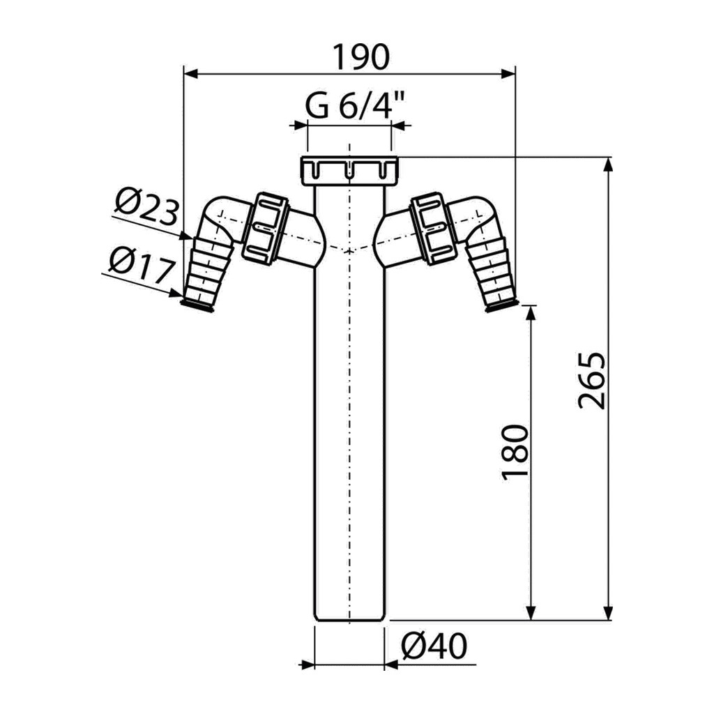 Domov » Sanita » Kúpeľne » Odtokové systémy » AlcaPlast A44M-DN40 – Medzikus s prevlečnou maticou 6/4″ a dvoma prípojkami