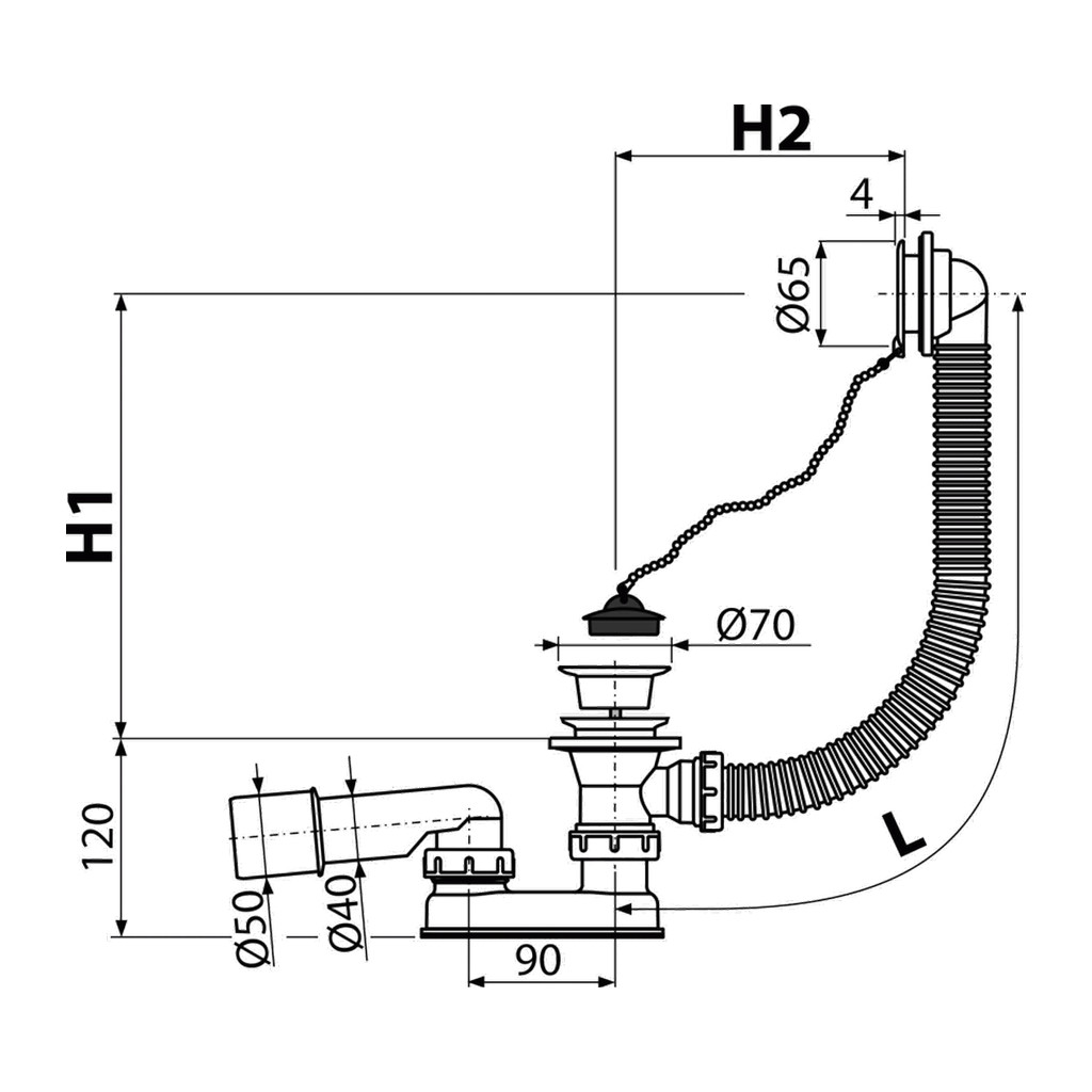 Domov » Sanita » Kúpeľne » Odtokové systémy » AlcaPlast A502 – Sifón vaňový, biela