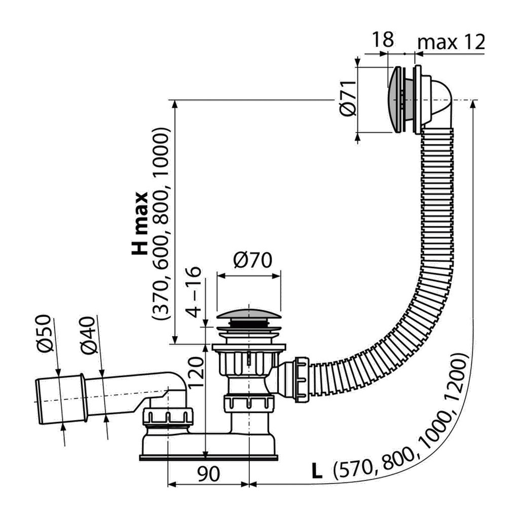 Domov » Sanita » Kúpeľne » Odtokové systémy » AlcaPlast A504CKM – Sifón vaňový CLICK/CLACK, kov