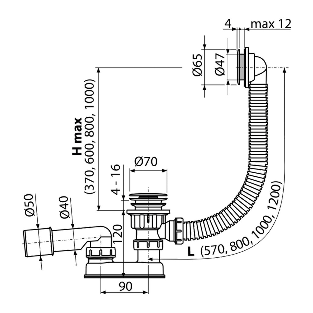 Domov » Sanita » Kúpeľne » Odtokové systémy » AlcaPlast A505CRM-80 – Sifón vaňový CLICK/CLACK, chróm