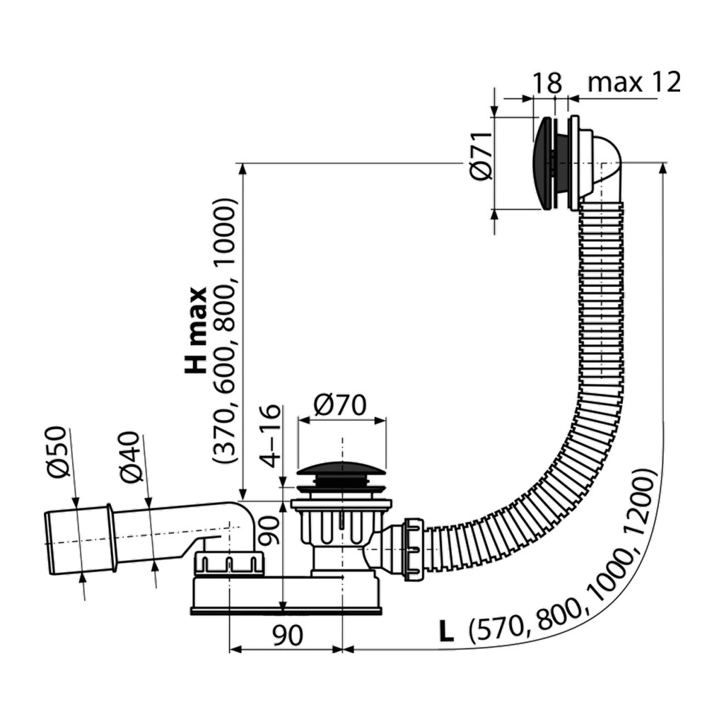 Domov » Sanita » Kúpeľne » Odtokové systémy » AlcaPlast A507BLACK-100 – Sifón vaňový CLICK/CLACK, čierna-mat