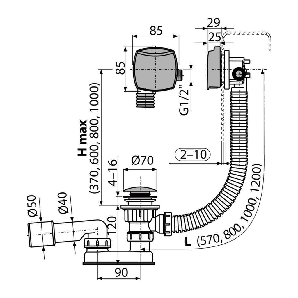 Domov » Sanita » Kúpeľne » Odtokové systémy » AlcaPlast A508CKM – Sifón vaňový CLICK/CLACK s napúšťaním prepadom, chróm