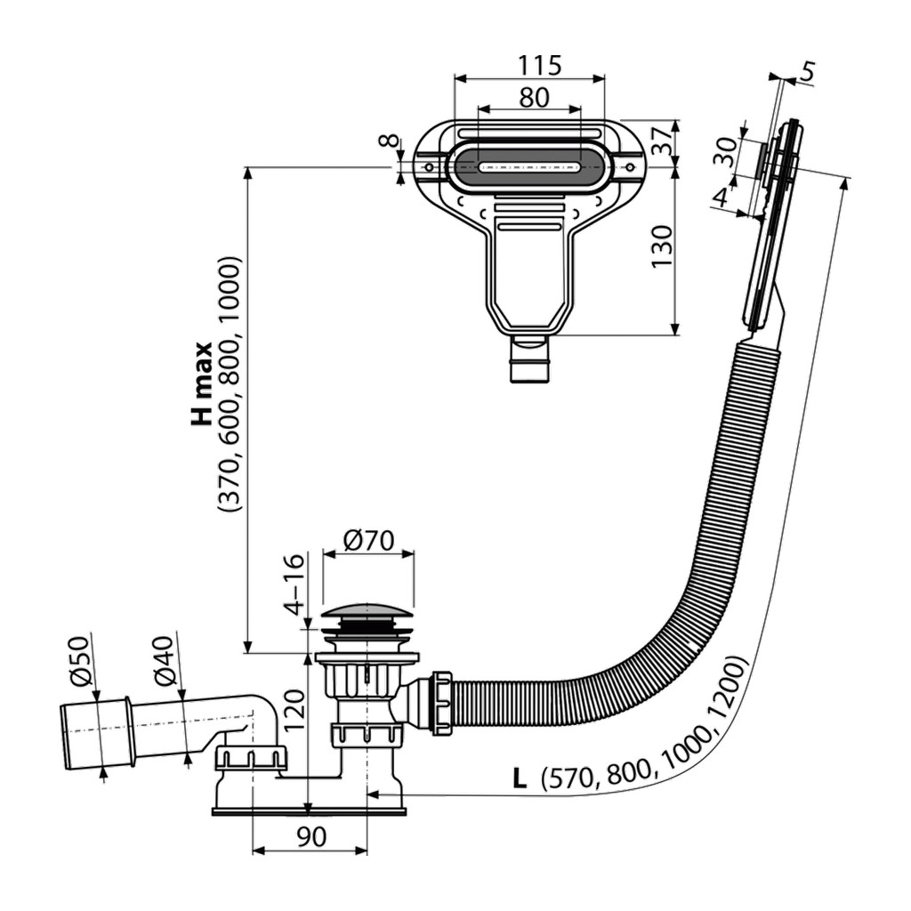 Domov » Sanita » Kúpeľne » Odtokové systémy » AlcaPlast A516CKM-80 – Sifón vaňový CLICK/CLACK s plochým prepadom, chróm