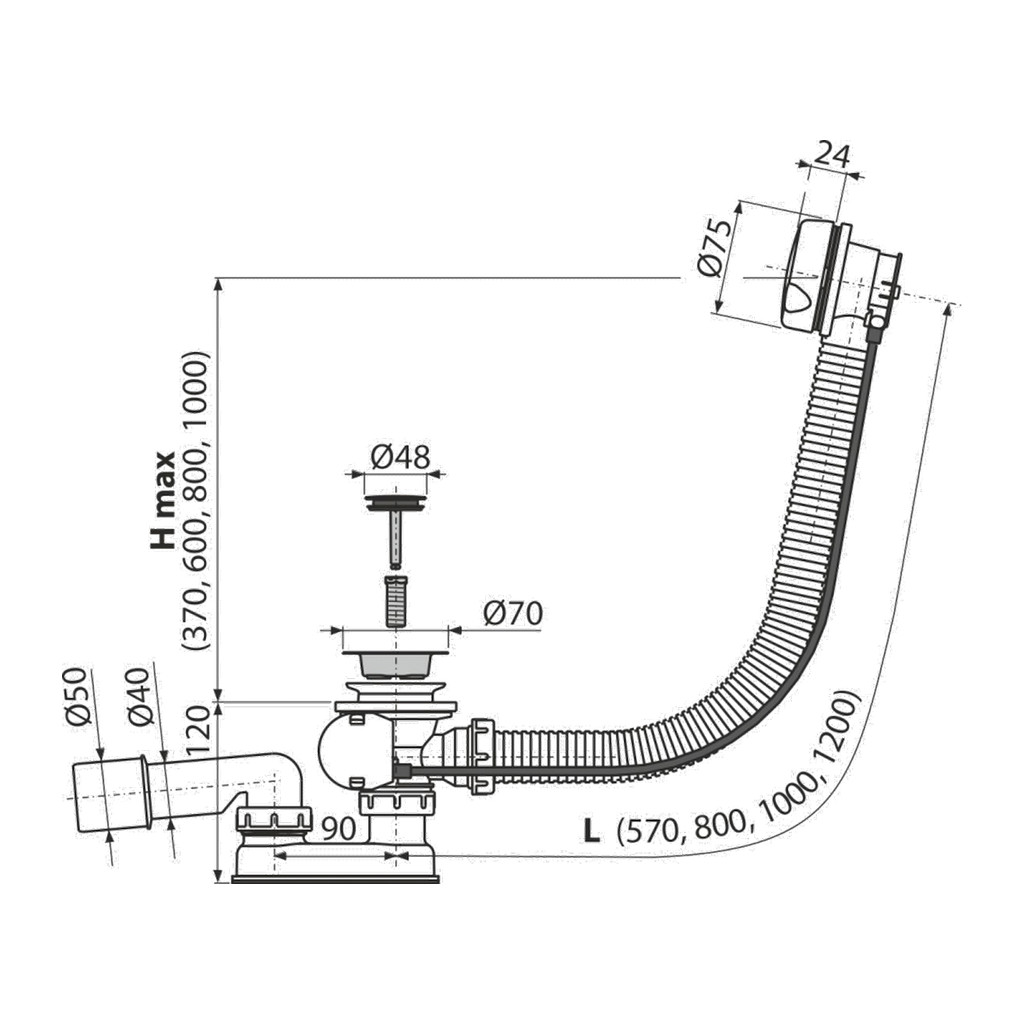 Domov » Sanita » Kúpeľne » Odtokové systémy » AlcaPlast A51B – Sifón vaňový automat komplet, chróm/biela