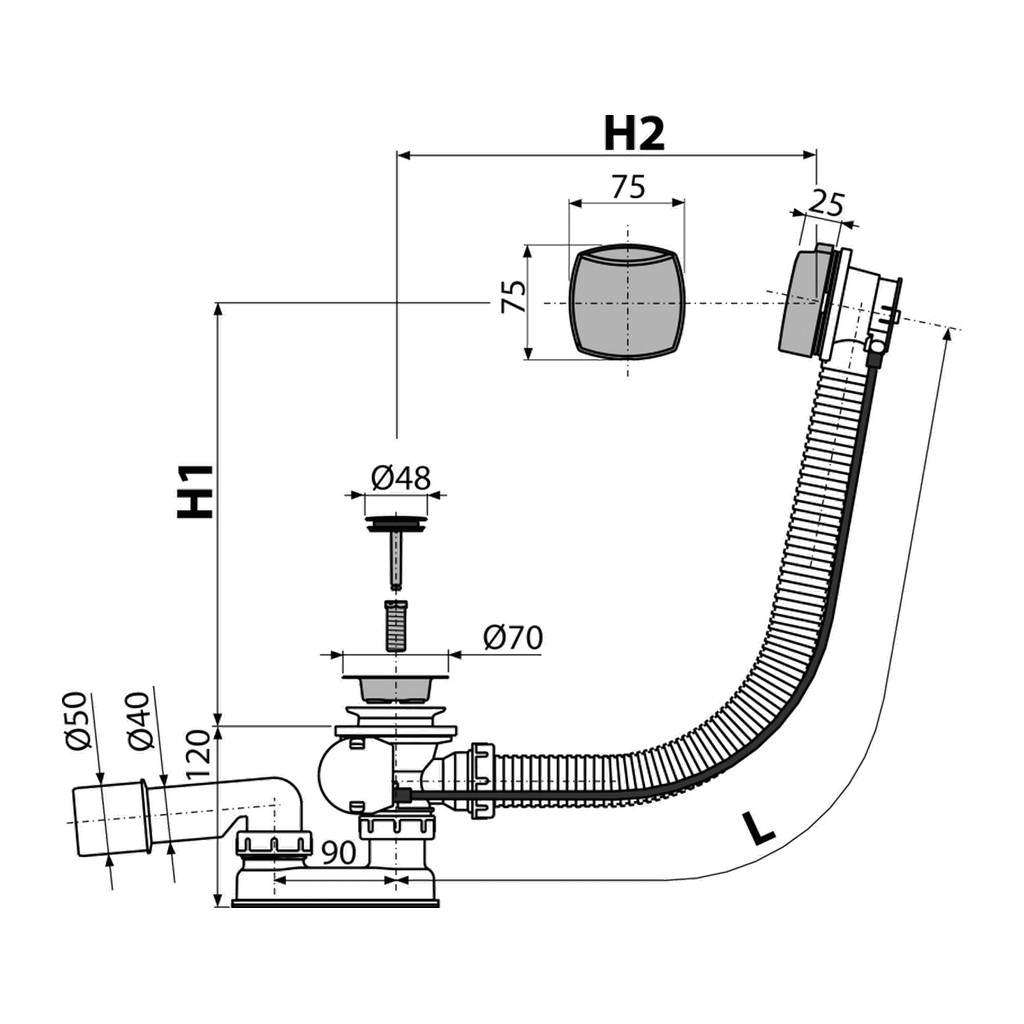 Domov » Sanita » Kúpeľne » Odtokové systémy » AlcaPlast A51CR-100 – Sifón vaňový automat komplet, chróm