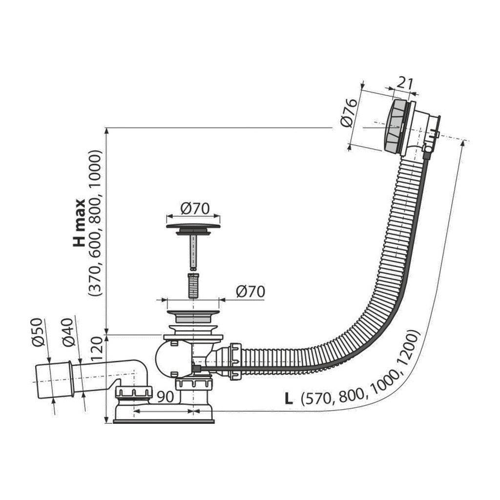 Domov » Sanita » Kúpeľne » Odtokové systémy » AlcaPlast A55KM-120 – Sifón vaňový automat, kov
