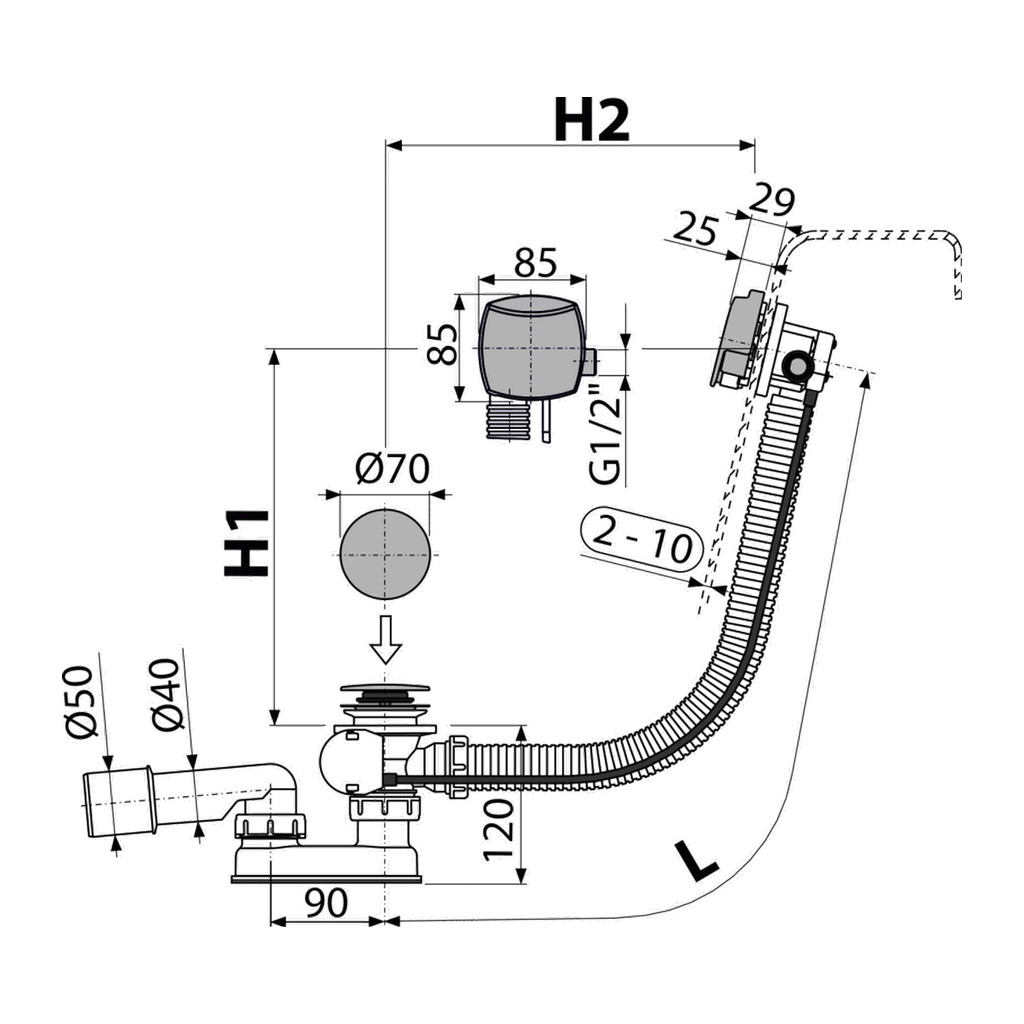 Domov » Sanita » Kúpeľne » Odtokové systémy » AlcaPlast A564KM1-80 – Sifón vaňový automat s napúšťaním prepadom, kov