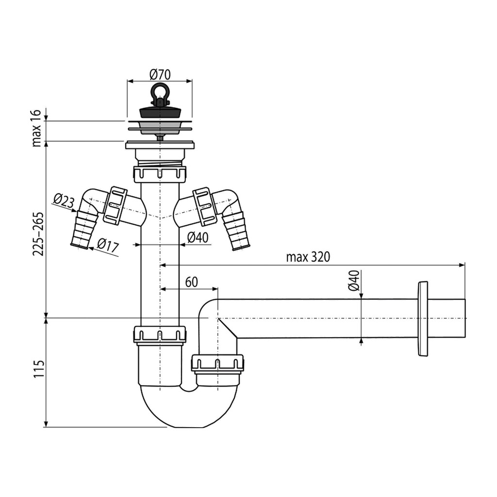 Domov » Sanita » Kúpeľne » Odtokové systémy » AlcaPlast A820-DN40 – Sifón trubkový s nerezovou mriežkou DN70 a dvoma prípojkami
