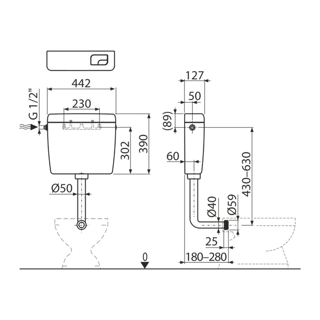 Domov » Sanita » Toalety » WC » WC splachovacie nádržky » AlcaPlast A930-M-1/2″ – WC nádržka DUAL nízko položená, biela