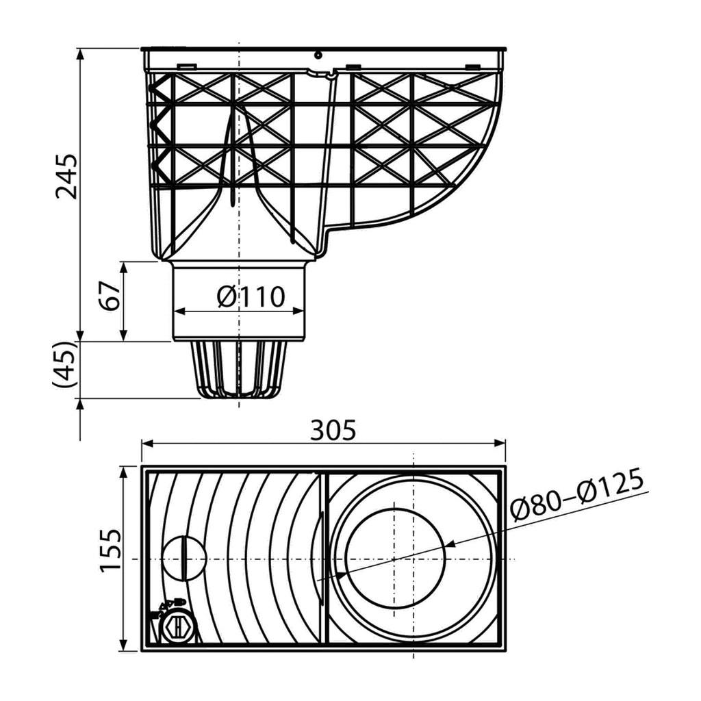 Domov » Univerzálne lapače strešných splavenín » AlcaPlast AGV1S – Univerzálny lapač strešných splavenín 300×155/110 mm priamy, šedá