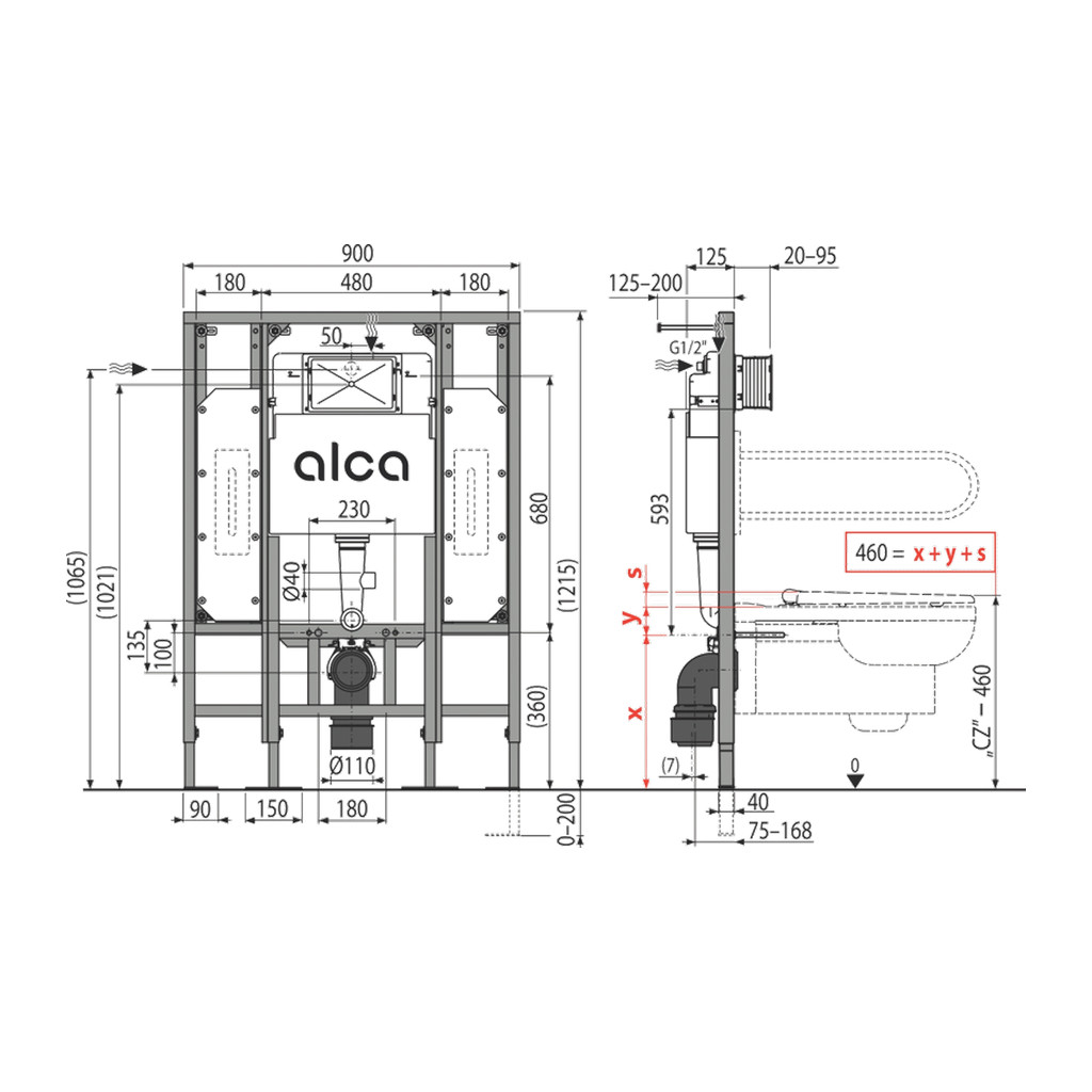 Konštrukcia rámu dovoľuje ukotvenie k samostatnej, dostatočne nosnej sadrokartónovej priečke alebo pred nosnú stenu