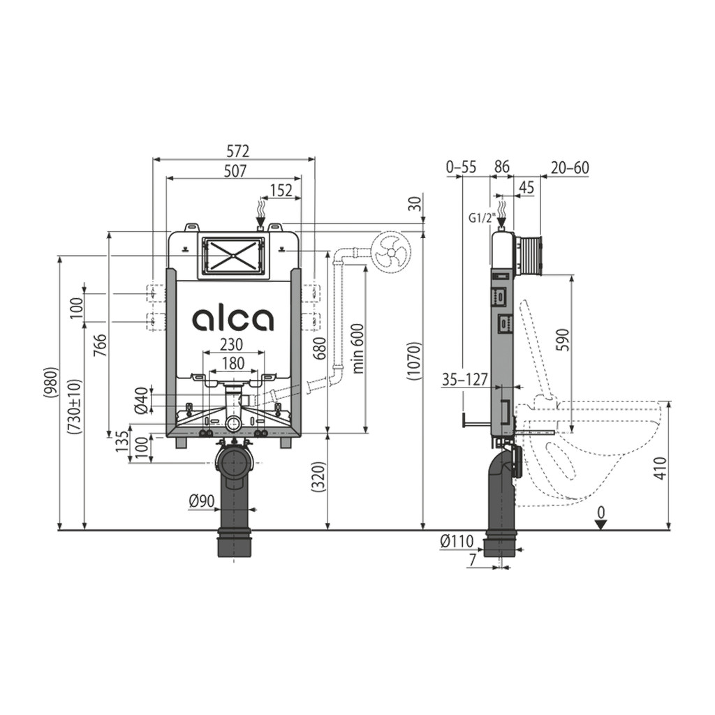 Domov » Sanita » Toalety » Podomietkové inštalačné systémy » Inštalačné systémy pre WC » AlcaPlast AM1115/1000 – WC modul pre zamurovanie