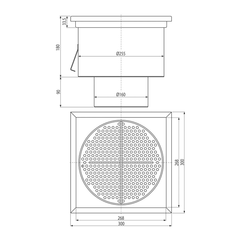 Domov » Sanita » Kúpeľne » Sprchové žľaby a rošty » Podlahové vpuste » AlcaPlast APR5-2121 – Priemyselná bodová vpusť 300×300, nerez AISI 316L
