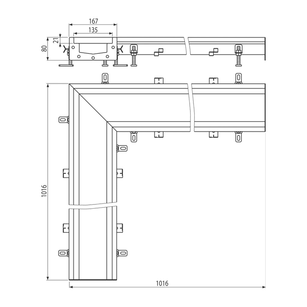 Domov » Sanita » Kúpeľne » Sprchové žľaby a rošty » Podlahové vpuste » AlcaPlast APR6-0211-135R – Priemyselný krabicový žľab rohový 1 m, nerez AISI 304