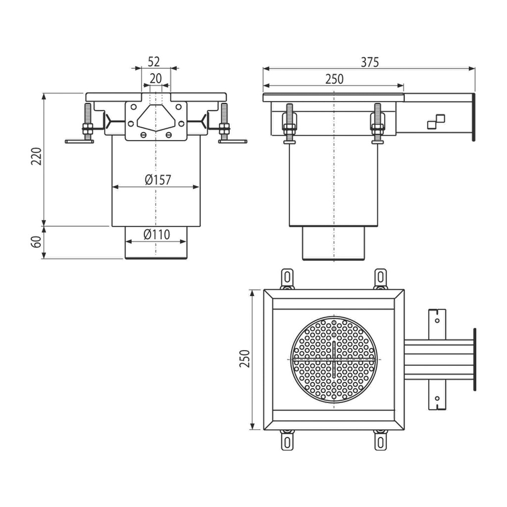 Domov » Sanita » Kúpeľne » Sprchové žľaby a rošty » Podlahové vpuste » AlcaPlast APR7-2321-20 – Priemyselná štrbinová vpusť koncová 250×250, nerez AISI 316L