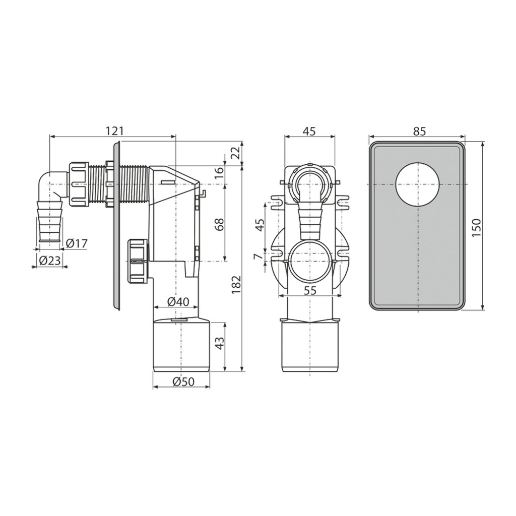 Domov » Sanita » Kúpeľne » Odtokové systémy » AlcaPlast APS3 – Sifón práčkový podomietkový, nerez DN40 a DN50