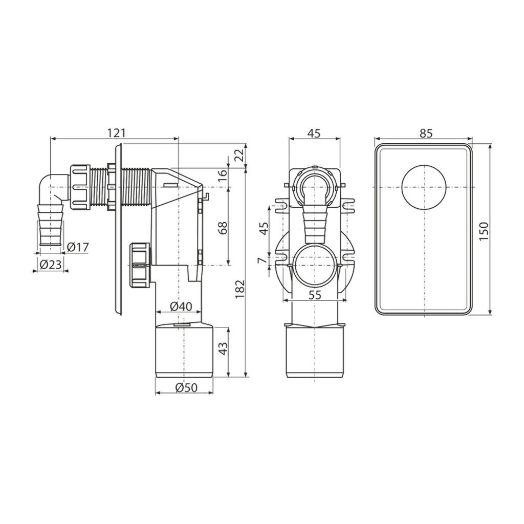 AlcaPlast APS4 – Sifón práčkový podomietkový, biela, DN40 a DN50