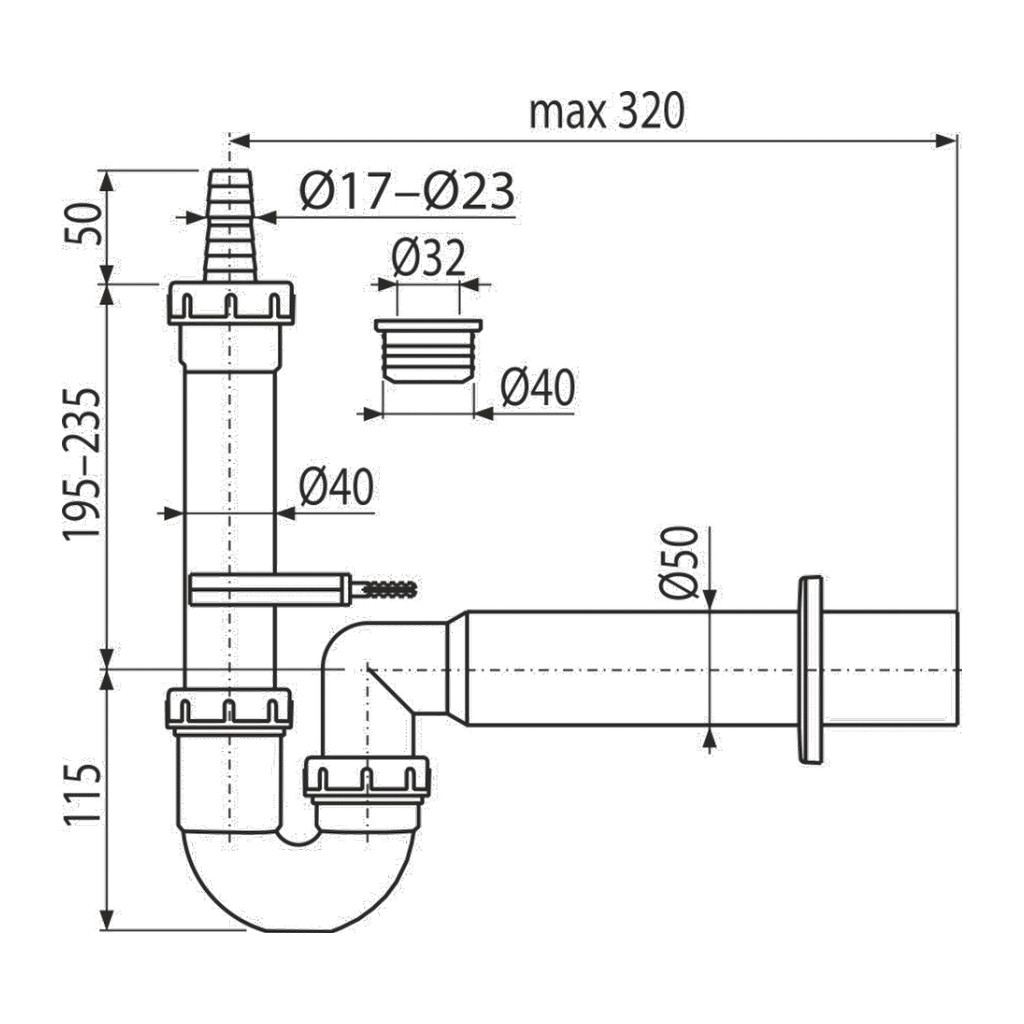 Domov » Sanita » Kúpeľne » Odtokové systémy » AlcaPlast APS7-DN50 – Sifón práčkový trubkový DN50
