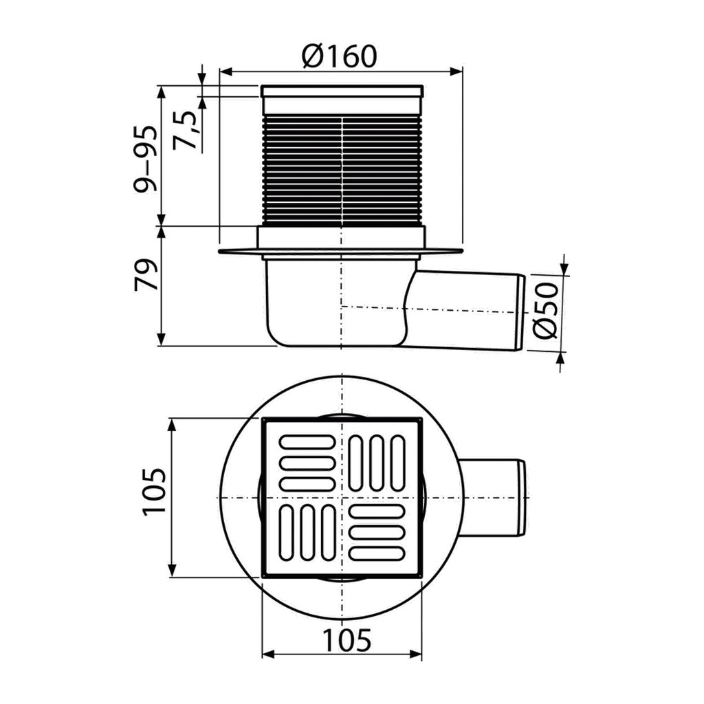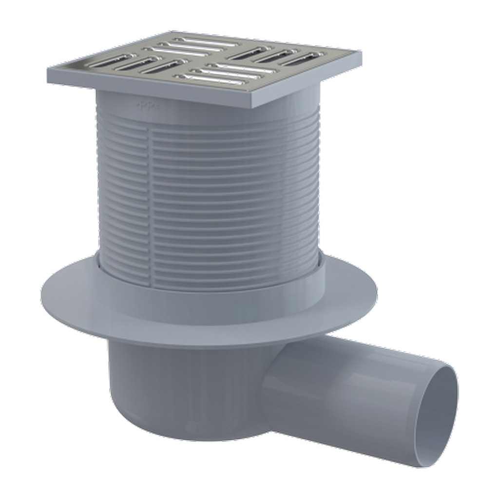 Domov » Sanita » Kúpeľne » Sprchové žľaby a rošty » Podlahové vpuste » AlcaPlast APV1 – Podlahová vpusť 105×105/50 mm bočná, mriežka nerez, vodná zápachová uzávera