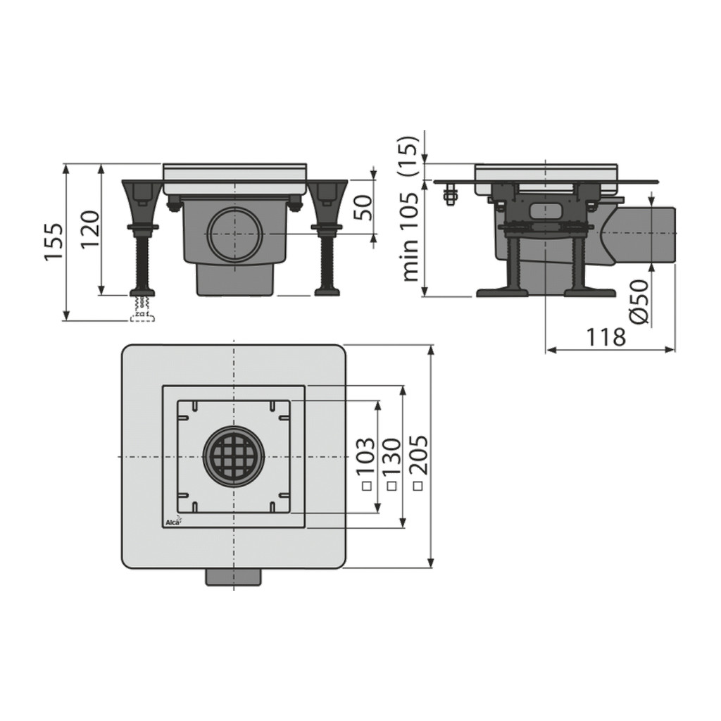 Domov » Sanita » Kúpeľne » Sprchové žľaby a rošty » Podlahové vpuste » AlcaPlast APV130 – Podlahová vpusť nerezová 130×130 mm bočná, bez mriežky, Kombinovaná zápachová uzávera SMART