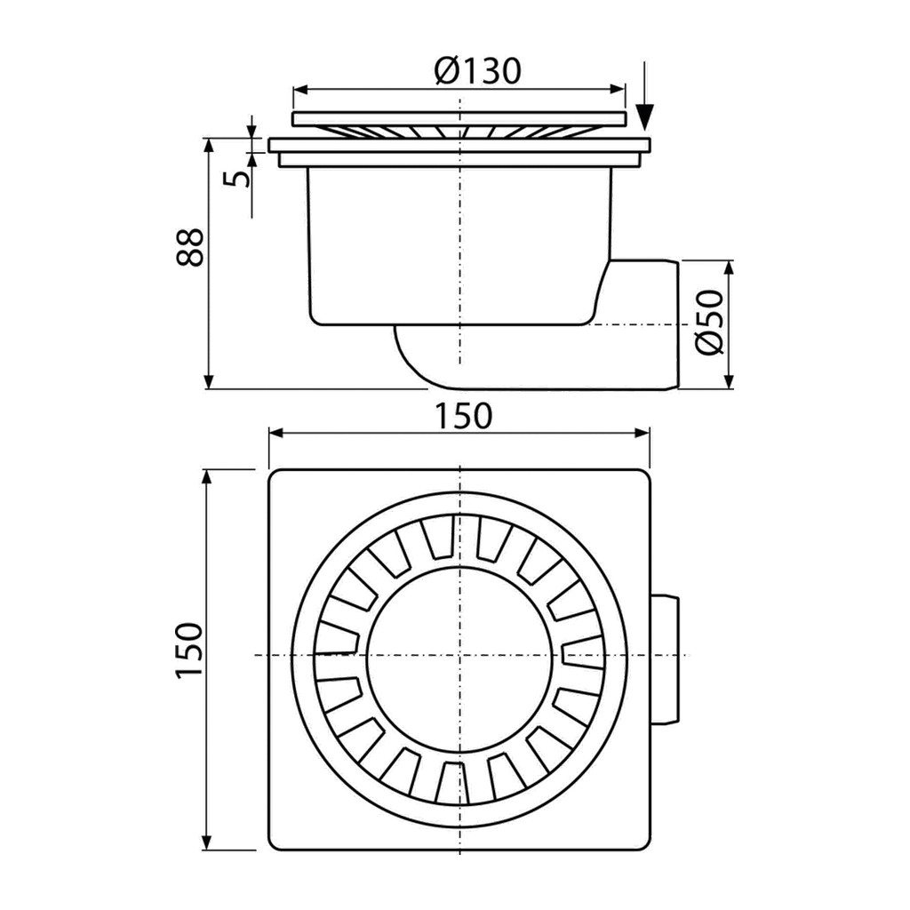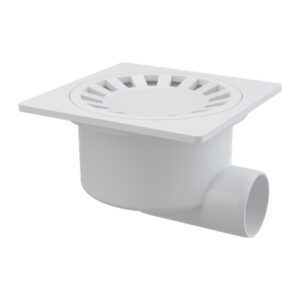 Domov » Sanita » Kúpeľne » Sprchové žľaby a rošty » Podlahové vpuste » AlcaPlast APV15 – Podlahová vpusť 150×150/50 mm bočná, mriežka biela, vodná zápachová uzávera