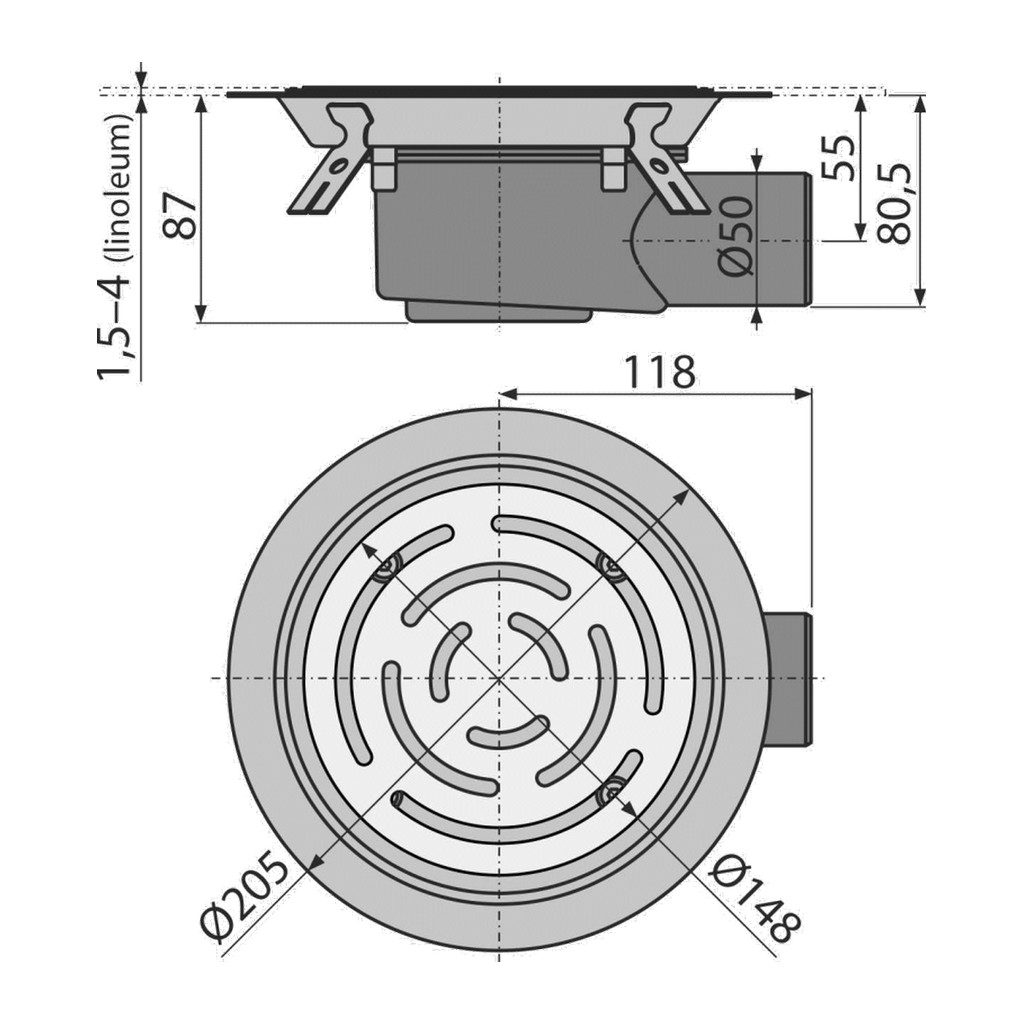 Domov » Sanita » Kúpeľne » Sprchové žľaby a rošty » Podlahové vpuste » AlcaPlast APV3513 – Podlahová vpusť 105×105/50 mm bočná, mriežka nerez, nerezová príruba a límec 2. úrovne izolácie, kombinovaná zápachová uzávera SMART
