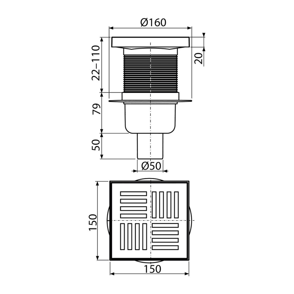 Domov » Sanita » Kúpeľne » Sprchové žľaby a rošty » Podlahové vpuste » AlcaPlast APV6211 – Podlahová vpusť 150×150/50 mm priama, mriežka šedá, vodná zápachová uzávera