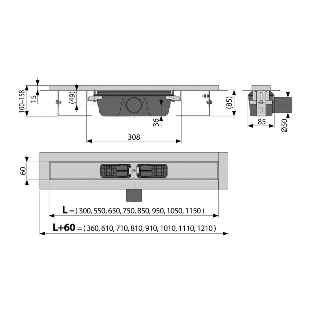 AlcaPlast APZ1-1050 – Podlahový žľab s okrajom pre perforovaný rošt