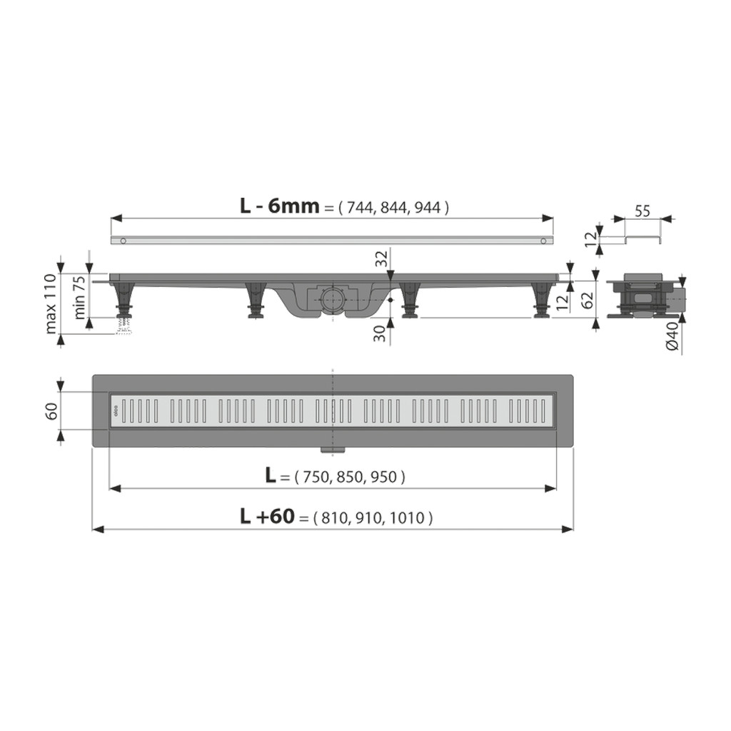 Domov » Sanita » Kúpeľne » Sprchové žľaby a rošty » Sprchové žľaby » AlcaPlast APZ10-550M – Podlahový žľab s okrajom pre perforovaný rošt