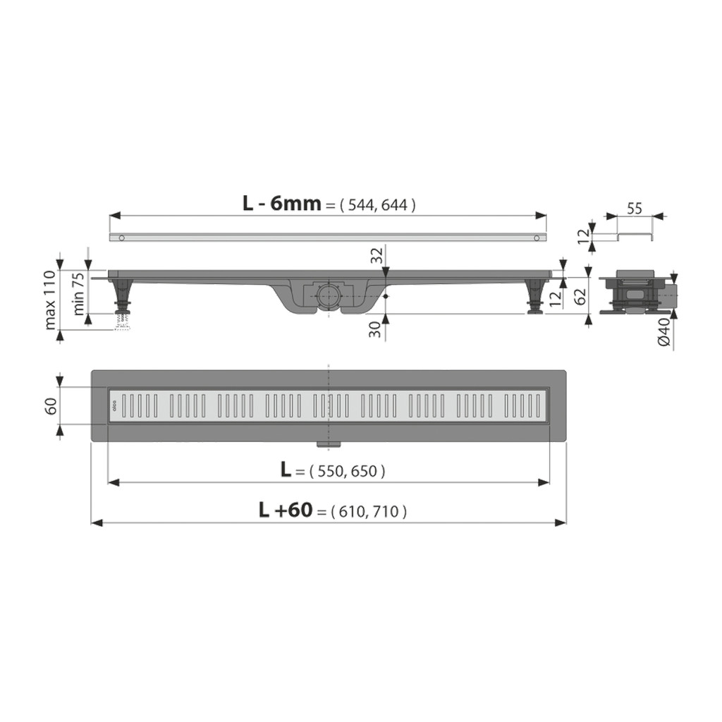 Domov » Sanita » Kúpeľne » Sprchové žľaby a rošty » Sprchové žľaby » AlcaPlast APZ10-850M – Podlahový žľab s okrajom pre perforovaný rošt