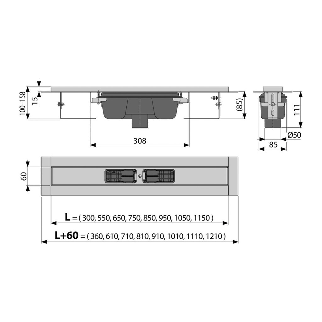 Domov » Sanita » Kúpeľne » Sprchové žľaby a rošty » Sprchové žľaby » AlcaPlast APZ1001-300 – Podlahový žľab s okrajom pre perforovaný rošt, zvislý odtok