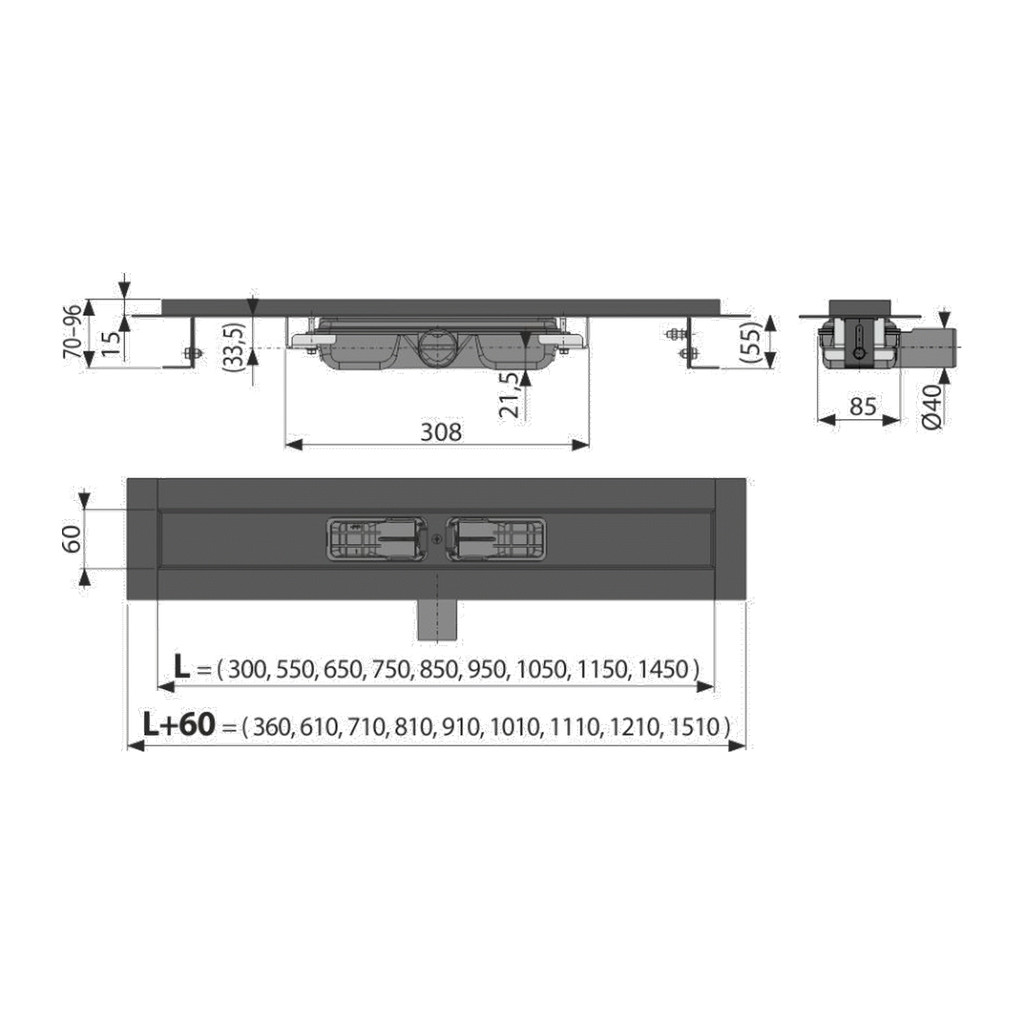 Domov » Sanita » Kúpeľne » Sprchové žľaby a rošty » Sprchové žľaby » AlcaPlast APZ101BLACK-1050 – Podlahový žľab s okrajom pre perforovaný rošt, čierna-mat