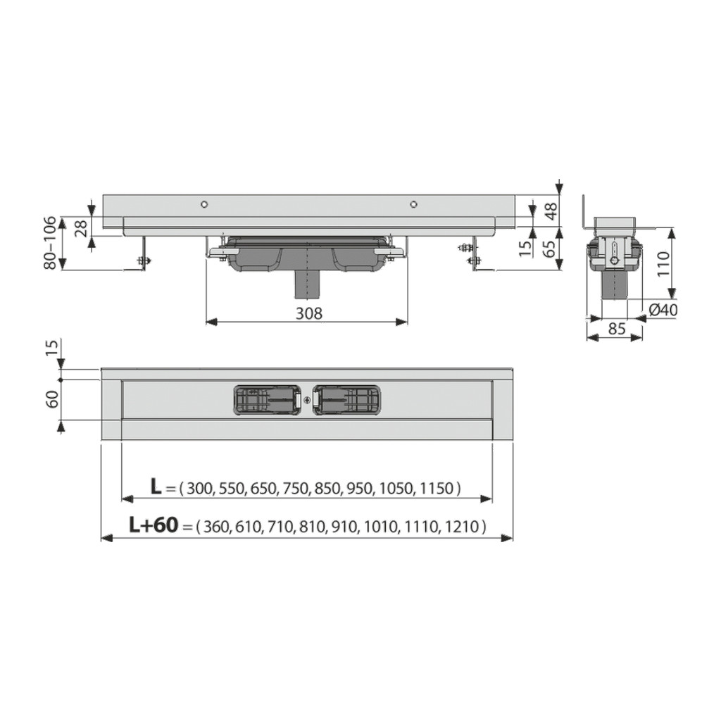 Domov » Sanita » Kúpeľne » Sprchové žľaby a rošty » Sprchové žľaby » AlcaPlast APZ1116-300 – Podlahový žľab s okrajom pre plný rošt a s pevným límcom ku stene, zvislý odtok