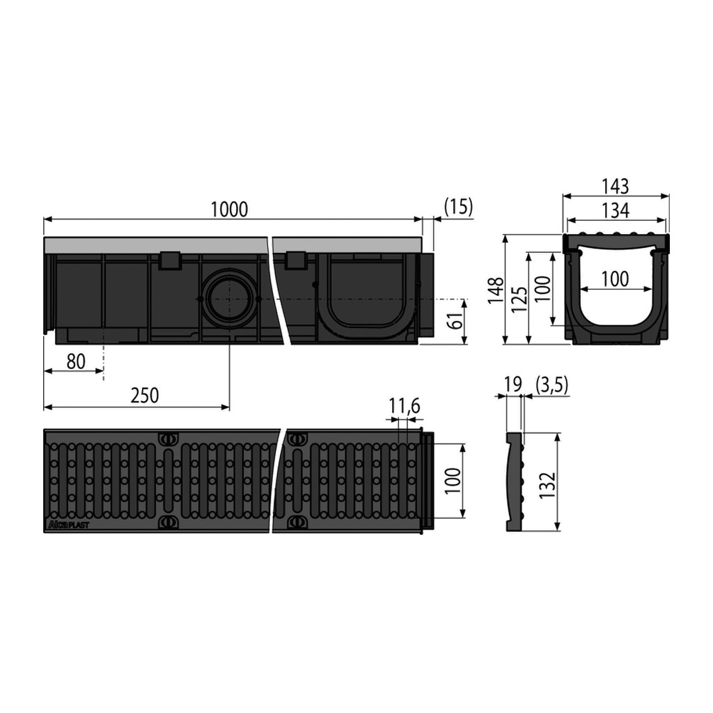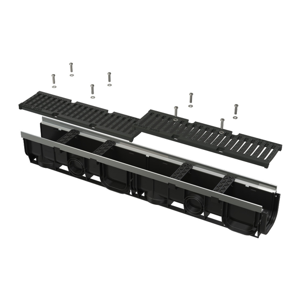 Domov » Vonkajšie žľaby » AlcaPlast AVZ103-R201 – Vonkajší žľab 100 mm s kovovým rámom a liatinovým roštom D400