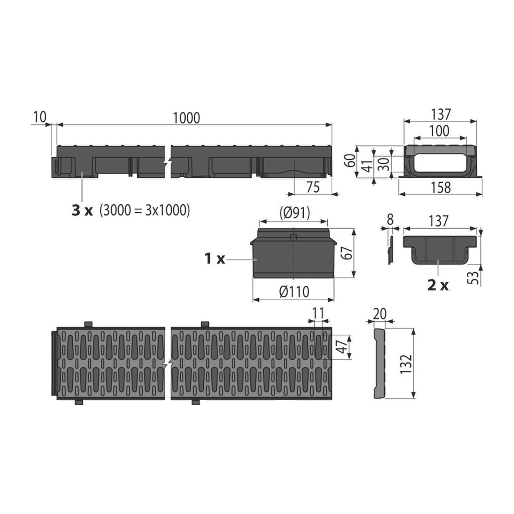 Domov » Vonkajšie žľaby znížené LOW » AlcaPlast AVZ112-G501 – Garážový set 3 m (2× čelo, 1× hrdlo DN110)