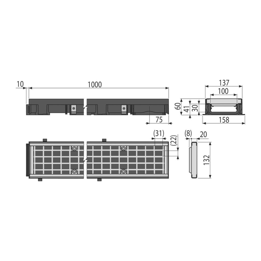 Domov » Vonkajšie žľaby znížené LOW » AlcaPlast AVZ112-R103 – Vonkajší žľab 60 mm s plastovým rámom a pozinkovaným roštom zvarok B125
